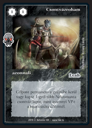 Szöveg: Célpont permanens a gyűjtőbe kerül vagy kapsz 1-gyel több Nekromanta csontváz lapot, mint amennyi VP-t a kijátszására költöttél.