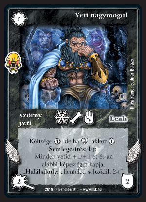 Szöveg: Költsége 3_VP, de ha _etnikum, akkor 1_VP. Semlegesítés: lap. Minden yetid +1/+1-et és az alábbi képességet kapja: "Halálsikoly: ellenfeled sebződik 2-t".