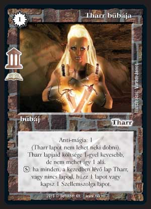 Szöveg: Anti-mágia: 1 (Tharr lapot nem lehet neki dobni). Tharr lapjaid költsége 1-gyel kevesebb, de nem mehet így 1 alá. (S): ha minden, a kezedben lévő lap Tharr, vagy nincs lapod, húzz 1 lapot vagy kapsz 1 Szellemszolga lapot.