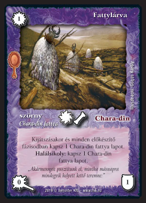 Szöveg: Kijátszásakor és minden előkészítő fázisodban kapsz 1 Chara-din fattya lapot. Halálsikoly: kapsz 1 Chara-din fattya lapot.