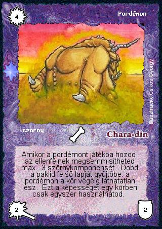 Szöveg: Amikor a pordémont játékba hozod, az ellenfélnek megsemmisítheted max. 3 szörnykomponensét. Dobd a paklid felső lapját gyűjtőbe: a pordémon a kör végéig láthatatlan lesz. Ezt a képességet egy körben csak egyszer használhatod.