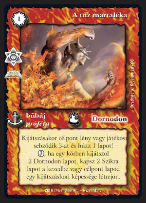 Szöveg: Kijátszásakor célpont lény vagy játékos sebződik 3-at és húzz 1 lapot! (J), ha egy körben kijátszol 2 Dornodon lapot, kapsz 2 Szikra lapot a kezedbe vagy célpont lapod egy kijátszáskori képessége létrejön.