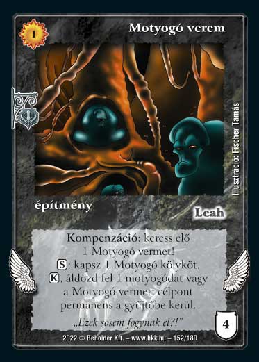 Szöveg: Kompenzáció: keress elő 1 Motyogó vermet! (S): kapsz 1 Motyogó kölyköt. (K), áldozd fel 1 motyogódat vagy a Motyogó vermet: célpont permanens a gyűjtőbe kerül.