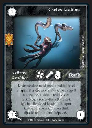 Cseles krabber (8): Habár a krabberek nem éppen a legerősebb etnikum, időnként kapnak egy-egy kiemelkedő darabot. Jó eséllyel a felújított Cseles krabber is egy ilyen. Egyért keresni baromi jó dolog, még akkor is, ha csak a felső 5 lapunkból tehetjük ezt meg. Ráadásul utána tetszőleges sorrendbe rakhatjuk vissza a többit. Ez ugye könnyen azt jelenti pl. egy csatamező esetén, hogy a maradék kártyákból is fogunk felhúzni párat még az adott körben. Már így is elég jó lap lenne, de az ellenfél körében még egyszer ki tud sülni ez a képesség, viszonylag könnyen. Ha meg nem, akkor vagy nem játszik ki lapokat, vagy a krabber kiszedett egy leszedést az ellenféltől. Így is, úgy is jól jártunk. Mivel a képessége keresés, Zarknod börtöne (és persze Korlátozás) mellé kifejezetten jó lesz, hiszen ezeknél aranyat érhet, ha ismerjük a következő lapjainkat.