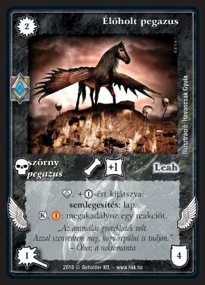 Élőholt pegazus (6): Pegazus pakliba nyilván befér, de sajnos csak oda jó, pont ezért lett nem gyakori, hiába képes lapot counterelni, majd asztalról megvédeni a lapjainkat.