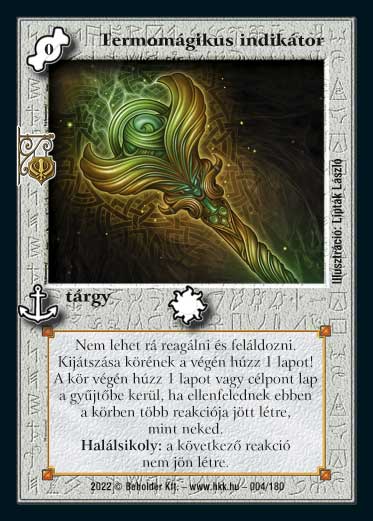 - Termomágikus indikátor | Ha az indikátor gazdája játszik ki több sikeres reakciót egy körben, az indikátor a gyűjtőbe kerül, halálsikolya nem jön létre.