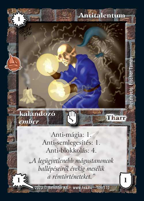 Antitalentum (6): Tesztelésen nagyon lebecsülték ezt a lapot, de én látom benne a lehetőséget. 1 varázsponttért kettőt dobatni akkor is erős, hogyha az ellenfélnek van némi választási lehetősége. Ugyanakkor az, hogy egy varázslatot meg egy semlegesítő lapot is kell dobnia, erősen lekorlátozza a lehetőségeit, ráadásul néha még jobban is járunk így, mintha random dobatnánk (Kreatív termiket sajnos nem trükközi ki). Valamilyen keltetős koncepcióban biztos fogok vele próbálkozni, legalább kiegészítő pakliban.