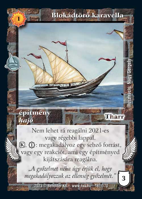 Blokádtörő karavella (6): Korrekt kis védőlap. Epikus hajópakliba annyira nem érzem, szerintem ott a követő védelme elég, viszont Építő rakshallion vagy Asz-phalt mellé elférhet.