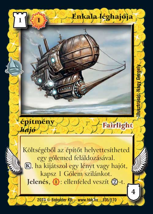 Enkala léghajója (6): Kezdetben – a legtöbb hajóhoz hasonlóan – csak egy építőért jött, úgy kifejezetten tetszett nekem, de aztán kapott még egy zanszilánk költséget. Így most szerintem kissé már gyengécske, mert a vp-lefojtás, amit a Gólem szilánkok adnak, a játék egy bizonyos szakaszában már annyira nem jó. Ugyanakkor a korai játékban, ha lejön, képes lehet kellemetlen meglepetést okozni.