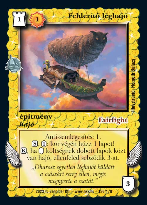 Felderítő léghajó (7): Szerintem egy érdekes lap, bár a viszonylag magas költsége kissé korlátozza a használatát. Amellett, hogy minden körünkben ad egy lapot, az ölésbe is besegít, akár körönként 6 Ép-vel is (igaz, ez azért a szerencsén is múlik). Főleg Asz-phalt mellé lesz erős (úgy általában a sárga szín is), ott nem fog gondot okozni a költsége sem, egy Szellemszolga magában is felépíti.
