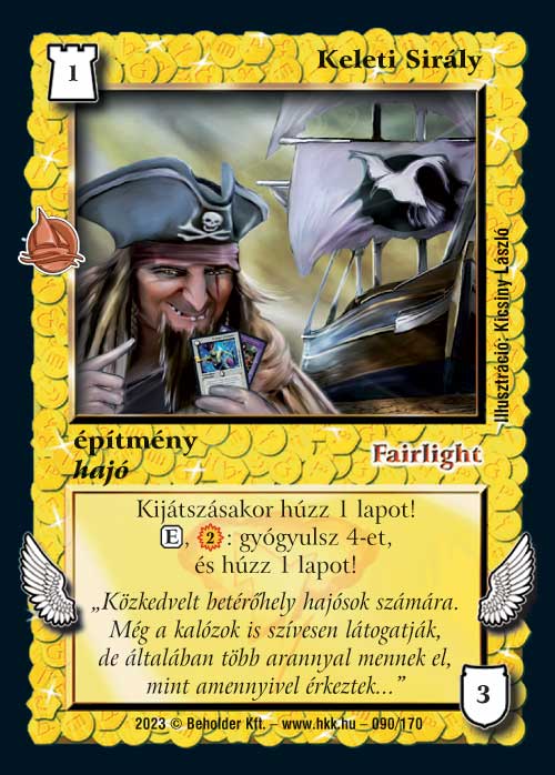 Keleti Sirály (6): A 3 itt megjelent erőforrás hajóból talán a leggyengébb, de azért nem haszontalan. Leginkább abban áll a gyengesége, hogy a másik két társa sokkal olcsóbban képes erőforrást termelni, a 2 zsz már az a határ, ami nem mindig lesz meg. Ugyanakkor az, hogy alapból cantrip, picit dob rajta, az első nagy kör végére így már 2 lapot kinyerhetünk belőle, ami nem rossz egyáltalán.