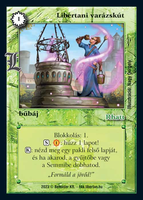 Libertan varázskútja (7): Egy okból vagyok szkeptikus ezzel a lappal kapcsolatban: a Felfelé a lejtőn-t ennél erősebbnek tartom, mert ingyen huzat és a drágító képesség is szerintem erősebb, mint a paklinézegetés. És azt sem igazán használja senki. Így itt sem vagyok túl optimista, annak ellenére, hogy maga a lap bőven jó. Talán az a rengeteg információ, amit ez a lap ad, elég lesz, hogy próbálkozzanak vele.