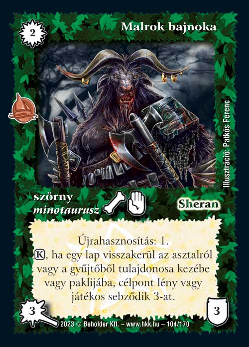 Malrok bajnoka (3): Egyszerű lap hasznos képességekkel, de nem érzem azt, hogy minotauruszok közé nekem ez hiányozna annyira. Bontotton jó lehet a kijátszáskori leszedése miatt és talán még 1-2 lappal kombózni is tudjuk. Azt viszont én is megemlíteném, hogy gyakori lap létére eszméletlen jó illusztrációt kapott.