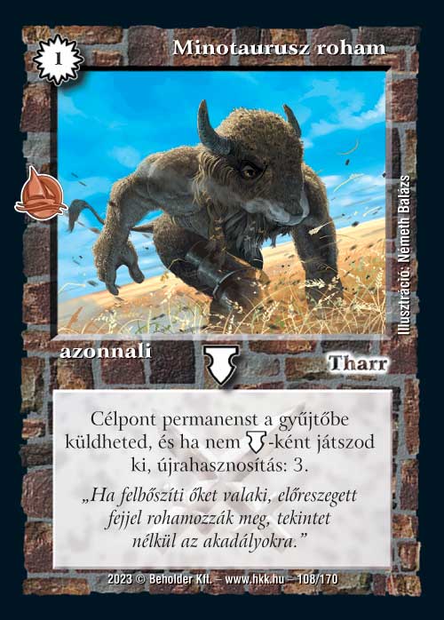 Minotaurusz roham (4): Bontotton jó gyakori leszedés. Azok közül talán a legjobb, mert védekezik, az újrahasznosítás meg mindkét oldalon hasznos lehet, főleg elhúzódó meccseken, ahol már nagyon jó eséllyel húzzuk fel újra az újrahasznosított ritka lapjainkat.