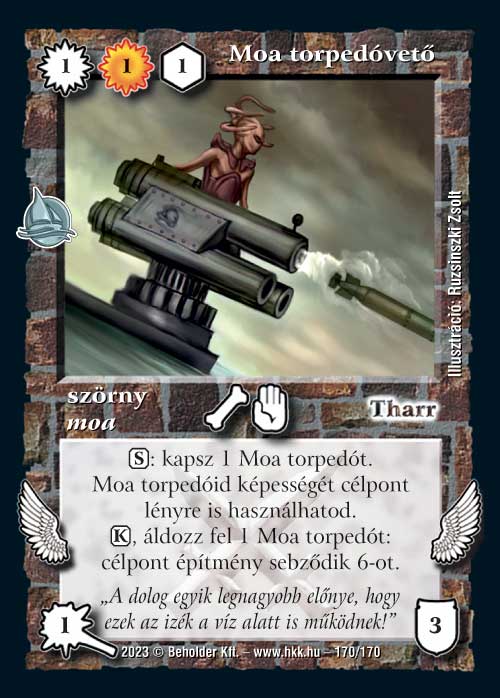 Moa torpedóvető (7): Ez már egy sokkal érdekesebb moa. Az eddig eléggé egypólusú Moa torpedókat hirtelen háromféleképpen is fel tudjuk használni, ami elég jól hangzik. Egyetlen baj, hogy ez csak addig tart, amíg a torpedóvető él, utána megint csak ölésre lesznek jók. Moa epikussal és Lassan járjjal viszont többször próbáltam és összességében egyáltalán nem működött rosszul.