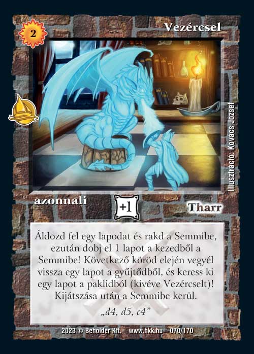 Vezércsel (7): Igazat megvallva ez az a lap, amit a tesztelésen sosem láttam, így nehéz róla megalkotnom a véleményem. Az biztos, hogyha megérjük a következő kört, akkor nagyon komoly előnyt fog nekünk adni. Ugyanakkor ennek néha elég komoly ára van (hiába két zsz, a többi hátrányát azért ki kell trükközni valahogy), ráadásul a Továbbfejlesztett technika mennyiségben ugyanezt adja azonnal, még ha a keresése kicsit korlátozottabb is. Úgyhogy én jelenleg nem nagyon érzem, hogy a Továbbfejlesztett technikánál erősebb lenne, de lássuk, ti mit tudtok vele kezdeni!