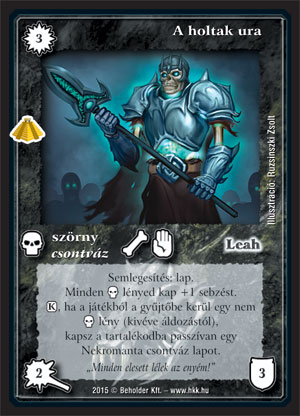 A holtak ura (8): 3-ért lapot semlegesítő lény - kissé a Mágusok alkonyát idézi. A holtak ura nem egy Szirén gésa- vagy egy Drakolder negátor-szint, ellenben olyasvalamire képes, mint az említett társai nem: hosszú távon lapelőnyt csinál nekünk. Rox, a csontok ura mellé 2-ért elég jó lesz, de lassabb, korlátozó jellegű paklikba is el tudom képzelni a csontváztermelés miatt.