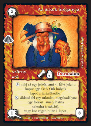 Az orkok öreganyja (7): A 2 VP kissé borsos ár az ork deckbe, ha azonban nem szedik le rögtön, onnantól nagyon lehéz lesz megállítani a hordát, hiszen a forrásoktól a sok kis Ork kölyök szépen bevéd bennünket. Ráadásul így tekerni is biztosan tudunk majd a Sötét manifesztációnak.