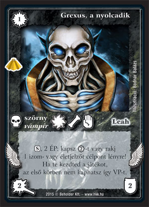 Grexus, a nyolcadik (8): A vámpír pakli ezidáig jobb híján Sötétségszellemet használt, ha manatermelésről volt szó - mostantól Grexus, a nyolcadik veheti át ezt a szerepet. Ha mi kezdtünk, akkor csak a második körtől működik, de ez nem nagy hátrány, hiszen ebben az esetben már amúgy se állunk rosszul. Ráadásul a későbbiekben - amikor a mana annyira már nem számít - más hasznos képességgel segít bennünket. Leah követős hordába is több mint ideális.