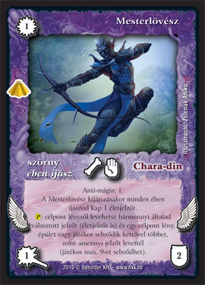 Mesterlövész (8): Brutálisan erős védelem az ében íjászok számára, amely nem mellesleg közben szét is lövi az ellenfelet. Ha ez nem lenne elég, akár a játékos lényeit is megfigurázhatjuk vele - egy Mesterlövész mellett az élet- és izomjelzők semmit sem fognak érni, sőt, még mi fogjuk megköszönni ellenfelünknek a még nagyobb sebzést. Korlátozott formátumokon beférhet más paklikba is, hiszen a legrosszabb esetben is 2-ket lövöldöz magában, de akár kombó paklit is építhetnek rá a vicces kedvűek a jelzőlevételre építve.