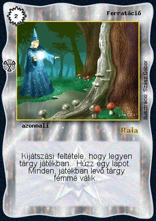 Szöveg: Kijátszási feltétele, hogy legyen tárgy játékban. Húzz egy lapot. Minden, játékban levő tárgy fémmé válik.