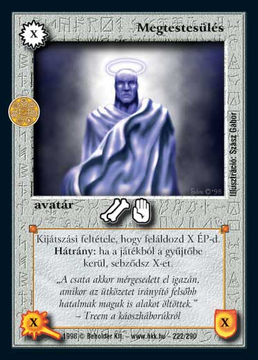 Hatalom Kártyái kártyalap - Megtestesülés |  | - Kinézet - (A szavazáshoz be kell jelentkezned!) (átlag: 70 szavazat alapján 7.8)