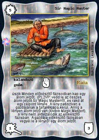 Szöveg: úszik Minden előkészítő fázisodban kap egy álom jelzőt. (P),2VP: vedd le az összes álom jelzőt Sir Magic Masterről, és rakd át egy célpont lényre. A lény passzívan a gazdájának a tartalékjába kerül. Amíg a lényen álom jelző van (kivéve Magic Mastert), a lény nem aktivizálódik az előkészítő fázisban. A gazdája előkészítő fázisában vegyél le a lényről egy álom jelzőt.
