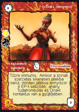 Szöveg: Tűzre immunis. Amikor a szinati szerzetes sikeresen játékba kerül, minden játékos annyiszor 4 ÉP-t sebződik, ahány Tudatrombolás és Direkt kontaktus van a gyűjtőjében.