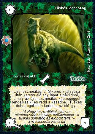 Szinesítő szöveg: "A Hegy torzszülöttei gyorsan alkalmazkodnak, vagy kipusztulnak - a tüskés dohratog az előbbit tette." - Encyclopedia Fantasia