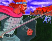 A hosszú íjjal ellenfeledre célzol és lősz. Elrepül 4 bronzhegyű nyíl. Lövedékeiddel perforálod az uzbány testét. (4 támadással 47 életpontot sebezve.) Marokra fogva a Mallon botját a másikra rontasz. Mallon botjával eltalálod az uzbány testét. (1 támadással 11 életpontot sebezve.) Aritma ostorával megütöd az uzbány testét. (1 támadással 10 életpontot sebezve.) Csőrével az uzbány nem tudott megsebezni. Az uzbány szemében félelem villan, aztán lassan lehunyja, miközben lelke kitör testének fogságából.