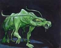 MÉRGES NYUKMÁR (95. SZÖRNY)A mérges nyukmár, a sötét helyeken megbúvó, másfél méter magas, ragyás, zöld bőrű, bogárszerű lény sokak szerint mérgező csípésű. Kedvenc taktikája, hogy áldozatát megragadja mancsával, majd csáprágójával átharapja a védtelen áldozat torkát. Tanulság: ne látogass sötét helyeket. Az erős, kitines páncél áttörésére talán az ütőfegyver a legjobb. |