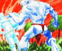 (Továbbmész...) [111,103] Síkság, továbbra is csak síkság. Virágzó maghóla illatát hozza a szél. Megérezve a magas fűből érződő szagot, rájössz, hogy valami rád leselkedik. Egy picit sem remegsz meg, amikor felismered, hogy egy uzbány közeledik. No, ma sem fognak berozsdálni az izmaid. Felkészülten várod ellenfeled.