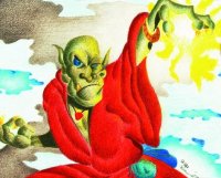 VARKAUDAR MÁGUS (128. SZÖRNY)A varkaudar mágusok ugyan csak szagolgatják a mágia tudományát, de lángcsóváikkal és energiatüskékkel azért komoly fejfájást tudnak okozni egy kezdő kalandozónak. Közelharcban nem annyira jók, mint egy harcos varkaudar, de azért megállják a helyüket. Nagy, földig érő, fekete köpenyben járkálnak, bunkósbotjukra támaszkodva. Vörösen izzó szemük látszik csak ki a csuklya alól. Varázslataikhoz nem használnak varázslatkomponenseket: hogy hogyan képesek erre, még senki sem tudta kiszedni belőlük. Titkukat mindig magukkal vitték a sírba. |