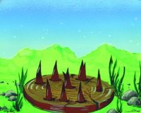 (Továbbmész...) [34,-1] Szűnni nem akar a zöld síkság. Ananászvirág illatát hozza a szél. Az irányodba osonó szörny tehetségtelen a rejtőzködésben, ezért rögtön kiszúrod. Ráismersz a lényre. Egy démontetű. Mivel esélytelen veled szemben, nyugodtan várod. Felkészülsz, hogy minél jobban el tudd kalapálni az agresszort.