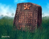 RÚNAKŐ (136. TEREPTÁRGY)A földön egy kisebb, szabályos alakú fehér követ veszel észre. Majdnem elbotlottál benne! Közelebbről megvizsgálod. Finom, művészi faragású márványtömbnek tűnik, bár a szélét már lekoptatta az időjárás. Ahogy lekaparod róla a földet, észreveszed, hogy valamilyen írás van rajta. Az egész oldala tele van róva apró, művészi rúnákkal! A követ megtapintva érzed, hogy furcsán, megmagyarázhatatlanul meleg a felülete. Megdobban a szíved: talán valamilyen ősi mágia buzog benne! Kaparni kezdesz, hátha találsz valami olvashatót, de sajnos semmi. |