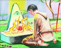 ÁLDOZAT BEMUTATÁSAAhhoz, hogy egy isten egyáltalán szóba álljon veled, nem elegendő, ha imádkozol hozzá: három áldozati tárgyat is el kell égetned az isten egyik rúnakövénél. Az, hogy milyen tárgyakra van szükség, attól függ, hogy kit akarsz követni. Az áldozat bemutatásához az ÁL (1. tárgy) (2. tárgy) (3. tárgy) parancsot kell kiadnod azon a mezőn, ahol a rúnakő van. Pl. ha az áldozati tárgyak egy kaja, egy vizestömlő és egy bot volnának, akkor az ÁL 2 3 4 parancsot kellene kiadnod. Az áldozás 20 TVP-be kerül. Előfordulhat, hogy a szertartás kudarcot vall - ennek az lehet az oka, hogy nem megfelelő tárgyakat használtál, nem volt a jellemed az előírt, vagy egy másik isten már elfogadta az áldozatodat. Ha a szertartás sikeres volt, a választott isten kapcsolatba lép veled, és a követőjévé válhatsz. Vigyázz, ez egy komoly döntés - ha egyszer egy isten szolgálójává válsz, nehéz és fájdalmas dolog ezt a szolgálatot otthagyni! Kegyvesztett lehetsz például akkor, ha megváltozik a jellemed - ilyenkor választhatsz egy újabb istent, de nem biztos, hogy az olyan könnyen fog fogadni... Ha az áldozatod el lett fogadva, nem kapsz azonnal félelmetes varázslatokat - először próbatételre kerül a hűséged, többnyire valamilyen nehéz feladat formájában. Vizsgálj meg minél többféle rúnakövet, mielőtt döntesz, kit fogsz követni! És ne feledkezz meg a jellemkövetelményről: ha például egy jó istent akarsz követni, akkor először jellempróbákkal és más módon el kell érned, hogy a jellemed jóra változzon. |