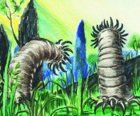 DEHIDRÁTOR (151. SZÖRNY)A dehidrátorok a sivatagok óriási testű ragadozói. Testük nagy része általában a homok alatt van, a homokférgekhez hasonlóan, a sivatag felszíne alatt utat fúrva közlekednek. Támadáskor óriási csápjaikkal szívják el áldozatuk testéből a vizet. Gyakran lőnek ki hősugarat a szemükből is, amivel a kevésbé kötött (pl. vizestömlőben levő) vizet párologtatják el, majd fogják fel bőrszenzoraikkal. Aki túl is éli a dehidrátorral való találkozást, minden bizonnyal felkészülhet a szomjhalálra. |