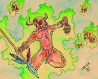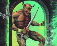 ZINTHURG (180. SZÖRNY)A Zinthurg a Sötét Földnek nevezett létsík lakói (Thargodanok) közül az egyik legalacsonyabb rangú. Mégis, természetes mágikus képességeiknél fogva nagyhatalmúnak számítanak Ghallán. A Thargodan egy sötét, fekete undormány, idegen létforma, minden szempontból ellentéte a fénynek, az életnek. A varkaudarok ugyan gonoszak, de részeit képezik ennek a világnak - a Thargodanokról ugyanez nem mondható el. A varkaudarok lelke sötét - A Thargodanoknak egyáltalán nincs lelke. Olyannyira veszedelmesek, hogy mégoly ritka megjelenésük Ghallán is általában katasztrófával jár. A Zinthurgok rabszolgái, talpnyalói a rangsorban felettük elhelyezkedő lényeknek, Ghallán azonban rengeteg náluk gyengébb lény van, és ezek felett uralkodhatnak - minden egyebet pedig igyekeznek elpusztítani. Egyetlen Thargodan sincs a test börtönéhez kötve, alakjukat kedvük szerint formálják. A Zinthurgok leginkább a közel három méter magas, ébenfekete testű, bikafejű, négy hatalmas, karomban végződő karral rendelkező formát kedvelik. A Zinthurg elpusztításához mágikus vagy ezüstből készült fegyver, ill. varázslat szükséges, egyéb fegyverek csak a felöltött külsőt képesek megsebezni, és ezt a lény egy szemvillanás alatt képes regenerálni. Ha egy Zinthurg fizikai formáját a Sötét Földön kívül pusztítod el, a lény maga nem semmisül meg, csak visszamenekül saját létsíkjára. A Sötét Földön elpusztított Thargodanok - kevés kivételtől eltekintve - végképp megsemmisülnek, de persze elpusztításuk itt jóval nehezebb, hiszen birtokában vannak teljes hatalmuknak. |