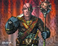 HARCOS (47. ELLENFÉL)A Túlélők Földjének középületei nem túl jól fizetik meg alkalmazottaikat. Mégis, mindig akad egy-két alak, aki rákényszerül arra, hogy munkát vállaljon a városházákon. A kapuőrök szintén nem tartoznak a legjobban fizetett katonák közé - ez valószínűleg itt-ott lyukas bőröltözetükön is látszik. Ennek ellenére akadnak köztük ügyes fegyverforgatók, akik ezt a hiányosságot harctudásuk villogtatásával képesek ellensúlyozni. Ha provokálni kezdesz egy ilyet, te is hamar megtapasztalhatod milyen erős ellenfelek ők. |
