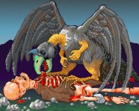 DÖGKESELYŰ (174. SZÖRNY)Dögkeselyűkkel leggyakrabban ott találkozhatsz, ahol bőven van friss hulla: a csatamezőkön. A ghallai dögkeselyűk különösen kövérek és erősek, és rettenetesen szemtelenek: nem egykönnyen hagyják magukat elzavarni a kiválasztott zsákmánytól. Leölésüknél leghatékonyabb, ha valamilyen vágófegyverrel átmetszed a nyakukat, de még az a technológia is elmegy, ha jól kupán vered őket valamilyen ütőfegyverrel. |