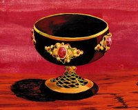 FEKETE KEHELY (283. TÁRGY)Ez a gyönyörűséges, de végtelenül gonosz kehely egyetlen obszidián kőből van kifaragva. Oldalára jól láthatóan Dornodon Rúnája van vésve, hogy elriasszon a Gonosz Istenek hívein kívül mindenkit a használatától. A Fekete Kehelyben kotyvasztott borzalmas folyadék titka könnyen megfejthető a kehely oldalára írt rúnák segítségével, azonban a komponensek beszerzése komolyabb problémát jelenthet. |