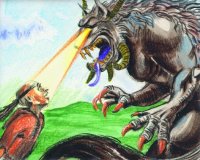 EZOTERIKUS MARDEL (184. SZÖRNY)Az ezoterikus mardel nagytestű, közel két méter magas szőrös kutyára emlékeztető szörny. Speciális pszi képességekkel rendelkezik. Például megérzi a tőle rettegő kalandozók jelenlétét (tehát értelmetlen rá BA parancsot kiadni, ily módon nem tudod a harcot elkerülni). Ezenfelül képes gyilkos pszi-sugarakat kibocsátani, amelyek meggyengítik elmédet és gyakran elveszíted a közelmúltban szerzett tapasztalatokat. Az ezoterikus mardel hatalmas, agyarszerű fogazatával támad, olyan dühvel, hogy gyakran még percekkel az elpusztítása után is képes sebeket okozni (ezt is egyfajta pszi képességnek vélik a megfigyelők). Ezért az ezoterikus mardelt szó szerint miszlikbe kell aprítanod, ha el akarod pusztítani. Bármilyen fegyver egyformán jó ellene. Megjegyzés: egy Toborzásgátló Vlagyimir nevű, tapasztaltnak mondható kalandozó állítása szerint ha valakinek sikerül egy ezoterikus mardelt elfognia, akkor aránylag könnyen megszelídítheti. És kevés olyan enyveskezű mestertolvaj született még e világra, aki észrevétlenül meg tudna közelíteni egy ezoterikus mardel által őrzött tábort... |