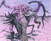 ÁERATIKUS HASNYÁK (243. SZÖRNY)Vajon milyen visszataszító, torz mágia teremtette ezt a szörnyszülöttet? Ez a három méter magas borzalom úgy néz ki, mintha különböző élőlények testrészeiből varrták volna össze, nem túl nagy precizitással. A hóna alól törpemammut ormány fityeg, a bal középső karjából szarvak állnak ki, három lába nem egyforma hosszú, emiatt biceg, feje olyan, mintha a nyakára egy belülről kifordított macskát raktak volna, és az egész teste lilás-zöldes, csupasz bőrű, néhol egy-egy groteszk, fehér anyaggal bevont szőrszállal. Látványától egy dologban biztos vagy: ennek a gusztustalan dolognak pusztulnia kell a föld felszínéről. Legkényelmesebben szúrófegyverrel ölheted le, ha vágó vagy ütő fegyvert használsz, túlzottan bemocskolod magad a lény testnedveivel. |