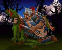 ŐSQUWARG (300. SZÖRNY) Egyszercsak megremeg a föld, és az apró quwargok szanaszét szaladnak. Lassan hatalmas kitinpáncél emelkedik elő a föld alól. Szájadat tátva, rémülten lépsz hátra. A háznyi méretű ősquwarg irtózatos és iszonytató szörnyeteg, ami elől még bizony neked is menekülnöd kell. Egyetlen lépésével palacsintává lapít bármely kalandozót, akár még a Vasalt Bunkókat is, csak a legtapasztaltabb quwarg irtóknak lehet ellene esélye. Ahol ősquwargok mozgolódnak, ott bizonyos, hogy egyéb quwargok is tömegével előfordulnak. Az ősquwarg kitinpáncélja ütőfegyver számára gyakorlatilag áthatolhatatlan, legfeljebb szúró- vagy vágófegyverrel sebesítheted meg, a megfelelő gyenge pontokat megtalálva, és persze a fegyvernek mágikusnak kell lennie. |