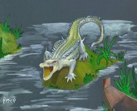 TESH ALLIGÁTOR (353. SZÖRNY) A mocsarak veszélyes ragadozói az alligátorok, szerencsére a tesh fajba tartozók az apróbbak. Persze ezek a kétméteres "apróságok" is elég nagyot tudnak harapni, különösen, ha nem vigyázol, és sikerül egynek meglepnie. A tesh alligátor ellen a szúró a legjobb, az ütő a legkevésbé hatékonyabb, és harcművészeknek különösen kellemetlen ellenfél, a bőrén meredező tüskék miatt. |
