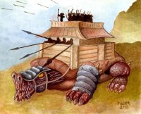 RYUKU OSTROMTEKNŐS (362. SZÖRNY) A félsziget északi részén partra szállt ryuku inváziós hadsereg hátasállatai ezek az óriási méretű, szárazföldi teknőcök. Ugyan igencsak lomhák, azonban hatalmas méretüknek és páncéljuknak köszönhetően megállíthatatlan harci gépezetek. Az ostromteknős étvágya igencsak kielégíthetetlen - talán ez az oka, hogy a partraszálló egységek kénytelenek voltak szabadon engedni állataik egy részét, és azok most szabadon kószálnak. |