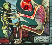 Elszántan a másikra rontasz. Brod buzogányával gyilkos csapást mérve bezúzod a varkaudar jobb karját. (1 támadással 37 életpontot sebezve.) Aritma ostorával iszonyatosan megcsapod a varkaudar jobb lábát. (1 támadással 21 életpontot sebezve.) A varkaudar feléd döf, de csak ijesztésképp. Yeeee! Lenyomtad az ellenfeledet, esélye sem volt.