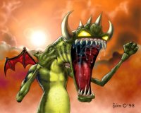 | SZÁRNYAS KOPONYA (7125. SZÖRNY) Mi a fene röpköd itt? Felismered, ez a lény ugyanaz, mint amit a rend gyűrűin is láthattál. Ez az agresszív, levegőből támadó, denevérszerű, koponya nagyságú valami azonnal rádront, amit a közelébe érsz. Ez egy rutinos kalandozónak még nem is lenne nagy baj, bármikor lecsapnád, de ezt a valamit nagyon nehéz eltalálni, vágó vagy ütőfegyver kell hozzá, hegyes eszközzel hiába is szúrkálod, mert nagyon gyorsan változtatja a helyét és elég kis méretű. Másik kellemetlen tulajdonsága az, hogy néha savas köpettel is eláraszt! |