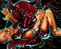 Vad csatakiáltással, felemelve a cápafogat ellenfeledre rontasz. Cápafoggal felnyársalod az elektromos angolna testét. (1 támadással 41 életpontot sebezve.) Vámpirizálsz (+9 életerő). Az elektromos angolna állkapcsa ártalmatlanul csapódik össze melletted. Feléd sújt az elektromos angolna a farkával, de elhibázta! Ellenfeled némi rángatózás után bugyborékolva leheli ki a lelkét!