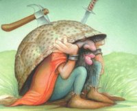 (Továbbmész...) [93,66] A terep változik: ismét síkságon vagy. Az irányodba osonó szörny tehetségtelen a rejtőzködésben, ezért rögtön kiszúrod. Úgy gondolod, hogy a közeledő erszényes elkarog nem jelenthet komoly veszélyt. Nem tetszik a szörny képe. Úgy döntesz, kiplasztikázod egy kicsit.